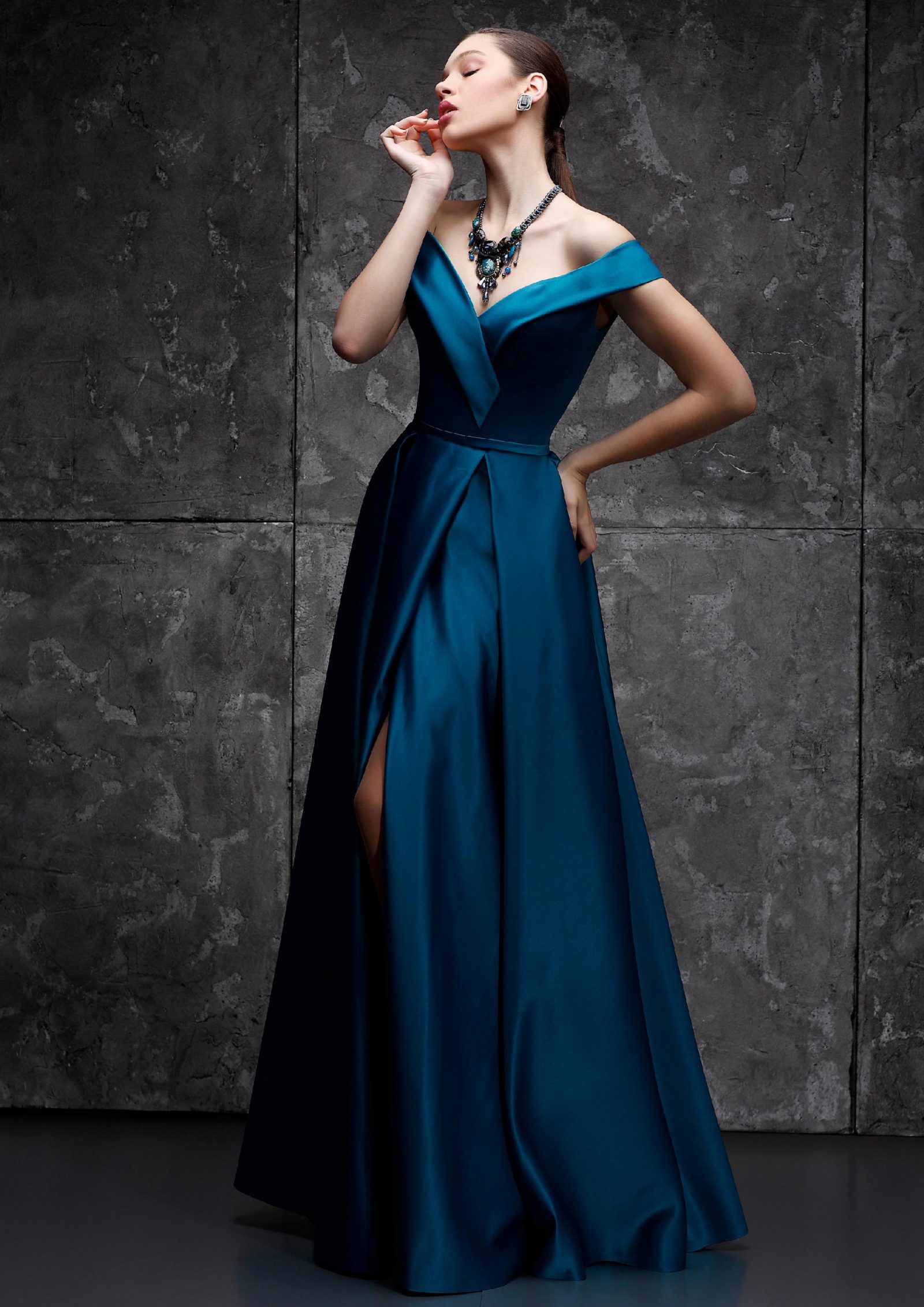 Открытые плечи, разрез по ноге, глубокие карманы.